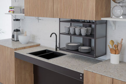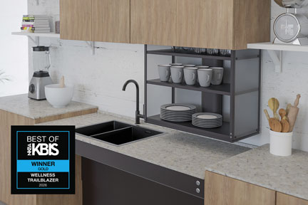 Richelieu is especially proud of its Gold recognition in the Wellness Trailblazer category, reflecting the company’s deep commitment to accessibility and human-centered design. Developed by Granberg, a renowned European manufacturer of accessible kitchen and living solutions, the VERTI 840 motorized lift for upper cabinets brings items within easy reach, helping users avoid stretching and straining.